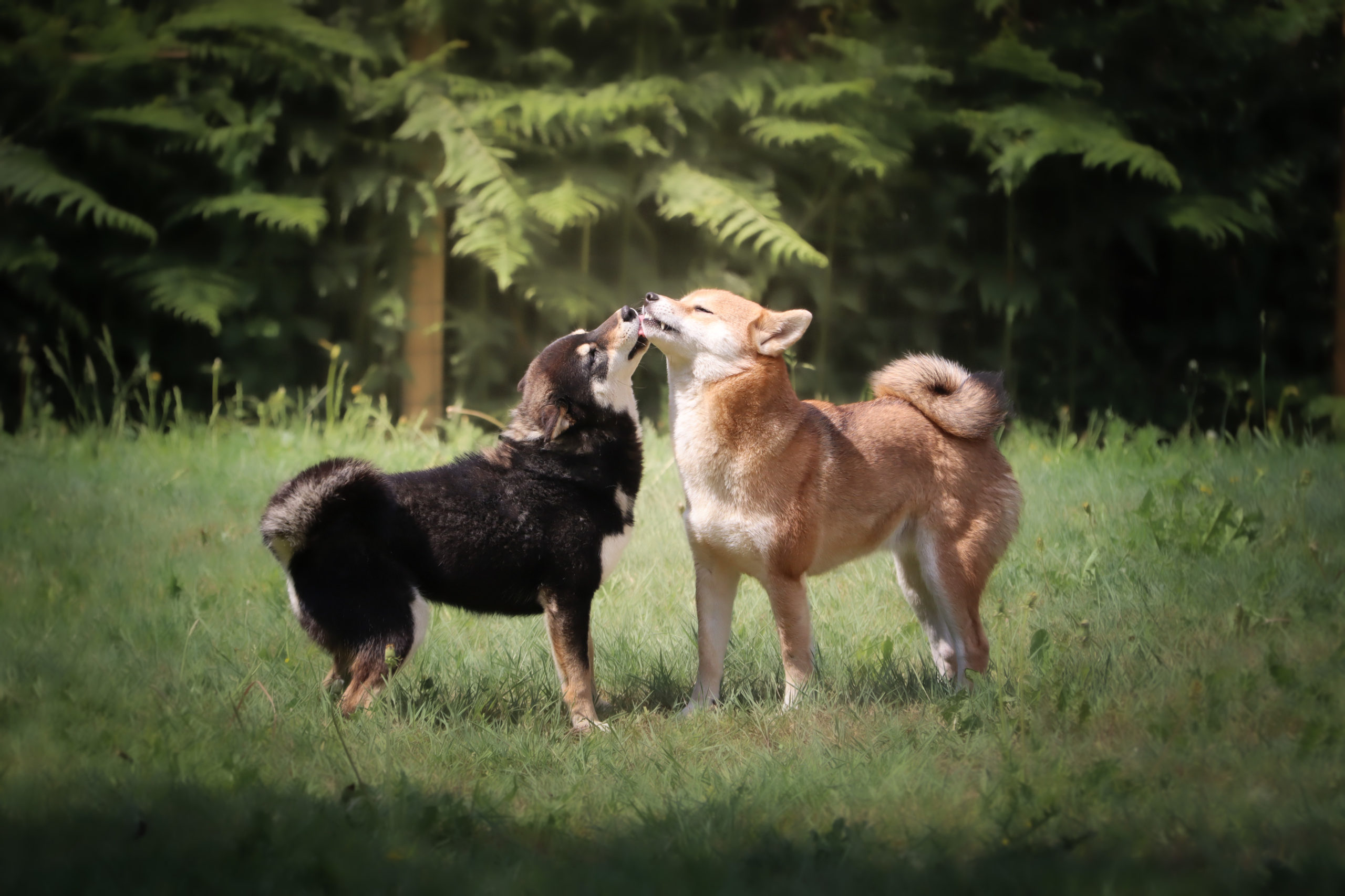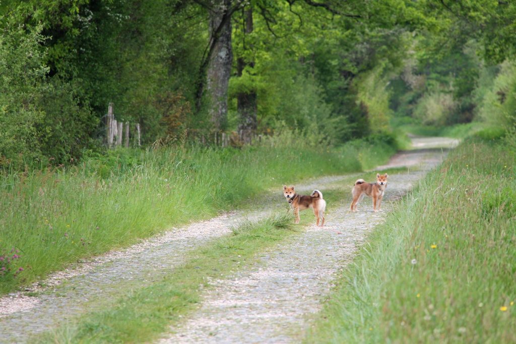 Parce que le bien-être passe aussi par la dépense, nos Shiba bénéficient de sorties quotidiennes, de balades en nature, de séances de jeux entre congénères et/ou avec nous. L’environnement diversifié qui entoure l’élevage nous permet de leur offrir des expériences variées : balades en forêt dans une nature préservée, promenades le long du canal, découvertes urbaines et familiarisation avec différents lieux de vie du quotidien.