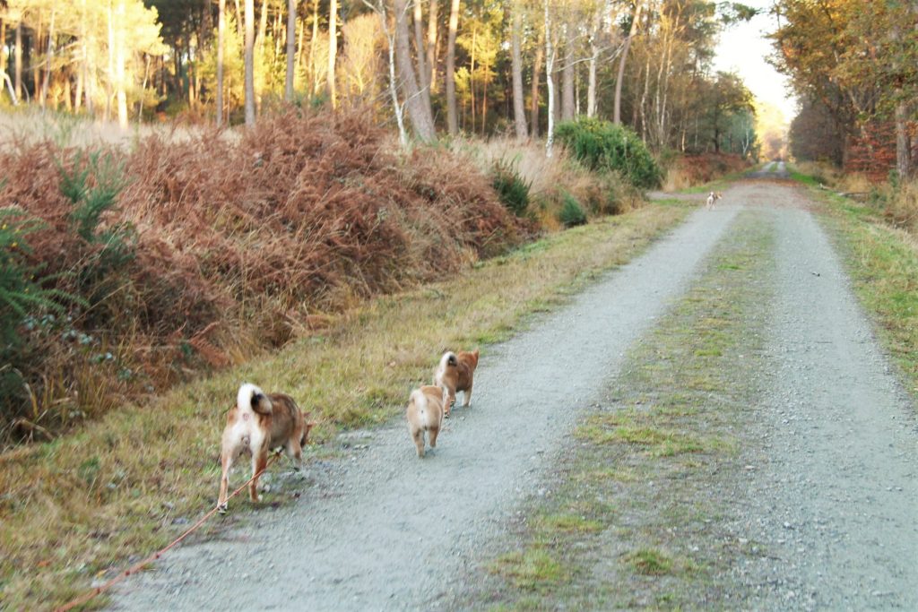 Nous ne sommes pas de grands sportifs mais tout de même des personnes actives qui passons beaucoup de notre temps libre à l’extérieur. Nos chiens nous accompagnent aussi bien lors de sorties rurales qu’urbaines. Deux de nos Shiba aiment également participer à mes séances de courses à pied, et découvrent ainsi les bases du cani-cross.